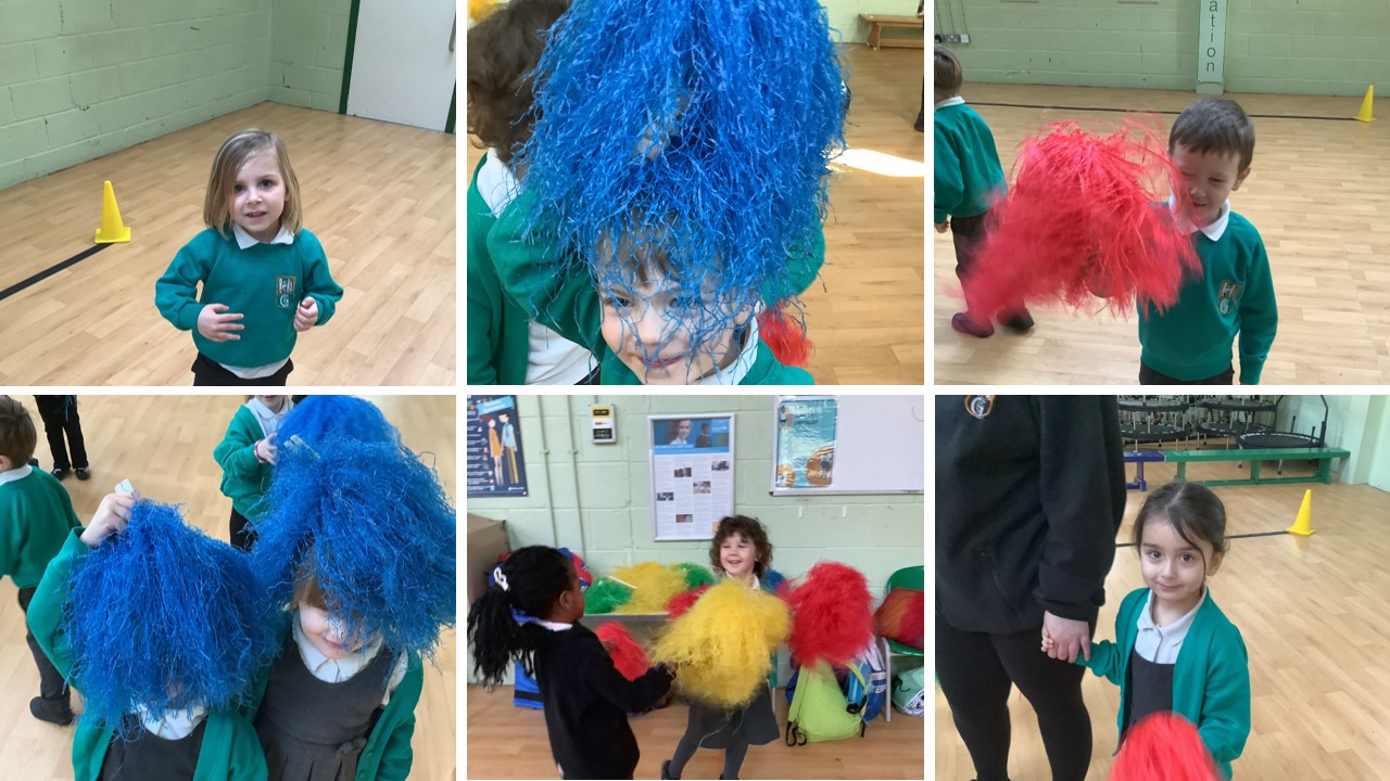 As part of Sports and Arts week we had a parade celebrating our hard work. We made clown hats, ties and streamers. I think you will agree we look fantastic!