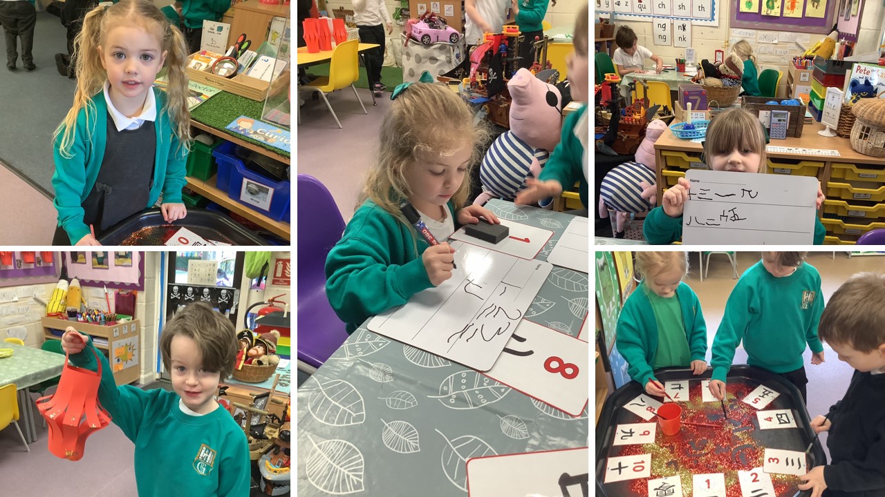 The reception children dressed up in their own clothes and clothes with numbers on for Number Day. They had lots of fun exploring number activities throughout the day, counting, recognising and ordering numbers.