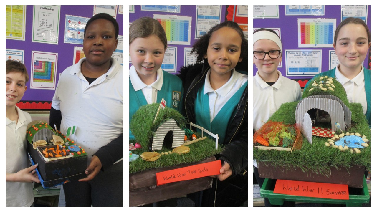 As part of our World War Two topic, year 6 have researched how the British public protected themselves during the German bombing raids (The Blitz). The children have learnt about the different types of air-raid shelters and written a set of instructions on how to build a Morrison shelter. To end their learning on this topic, and as a part of a DT project, the children had the exciting opportunity to design and create their own model Anderson shelter. All the children did a fantastic job working with enthusiasm as the constructed authentic shelter models. Well done year 6!